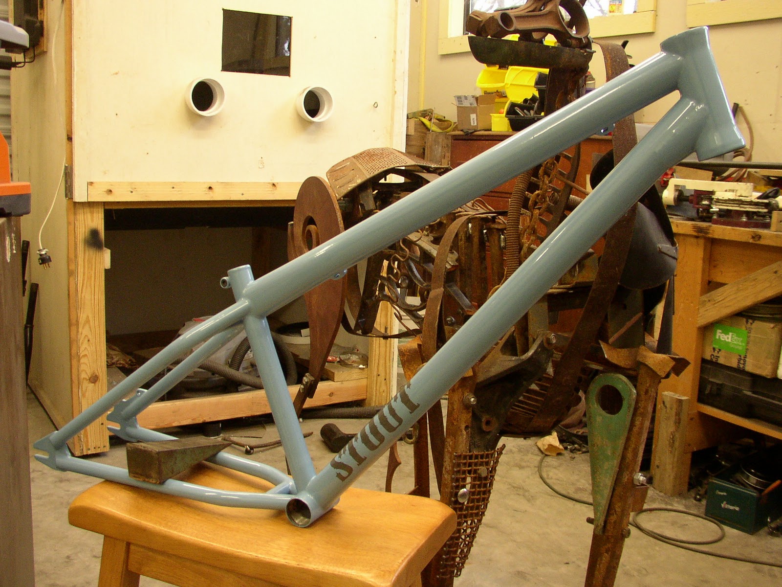 The frame is the most recent design with the trimmed disc drops, smaller TT and the integrated seat pinch bolt. With clear coat, this one's about 5.7lbs